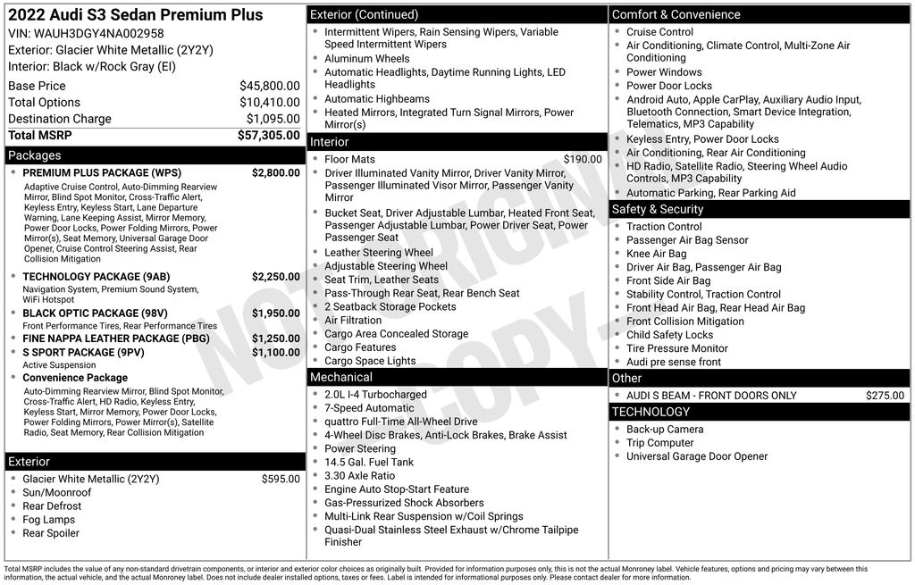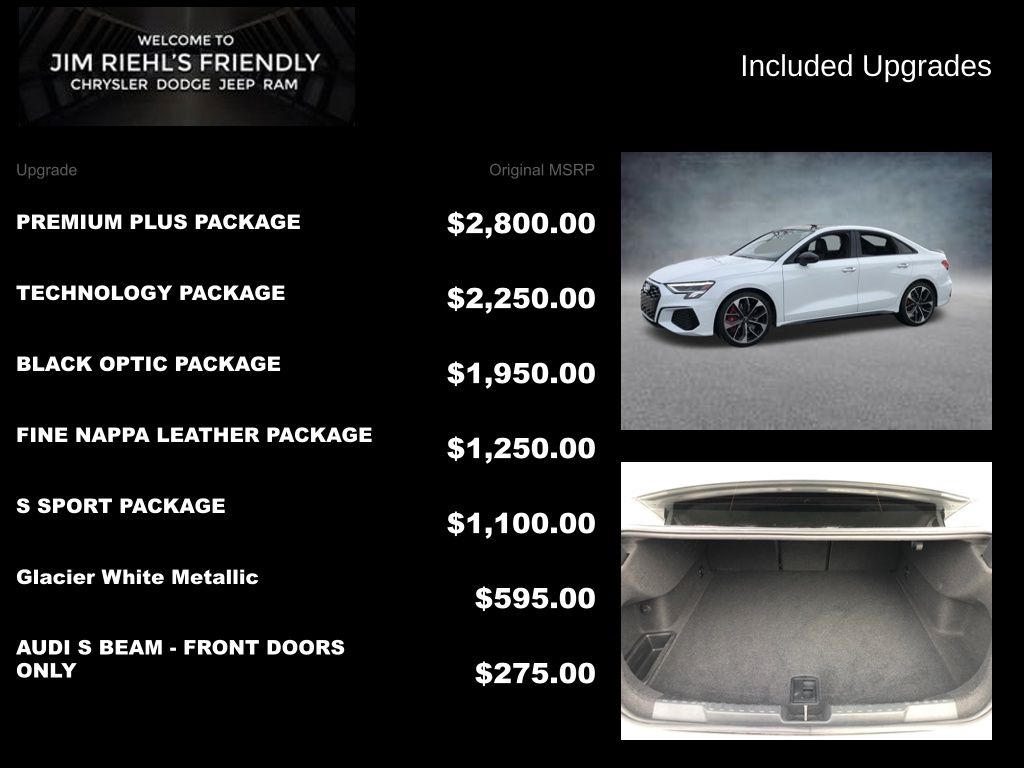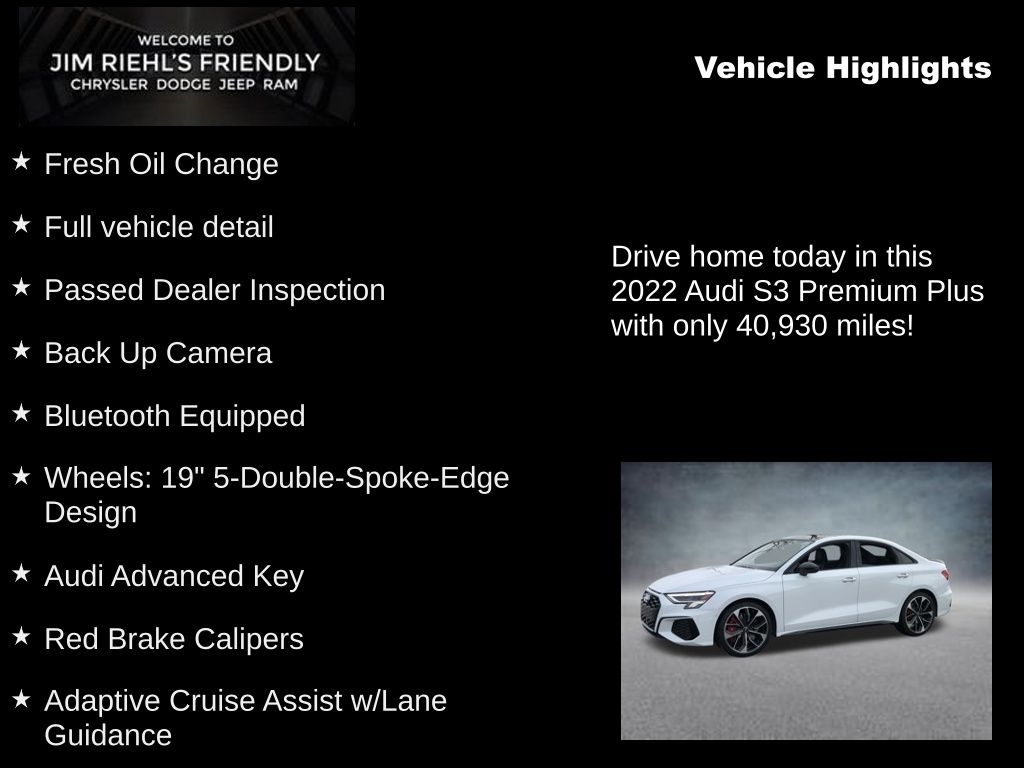 2022 Audi S3 2.0T Premium Plus quattro Glacier White 2.0L 4-Cylinder TFSI 7-Speed Automatic S tronic quattro