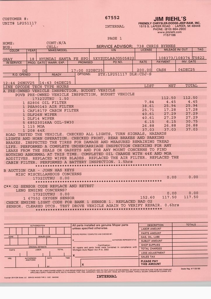 • Fresh Oil Change