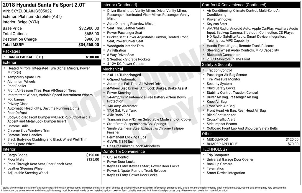 2018 Hyundai Santa Fe Sport 2.0T Platinum Graphite 2.0L I4 DGI DOHC 16V Turbocharged 6-Speed Automatic with Shiftronic AWD