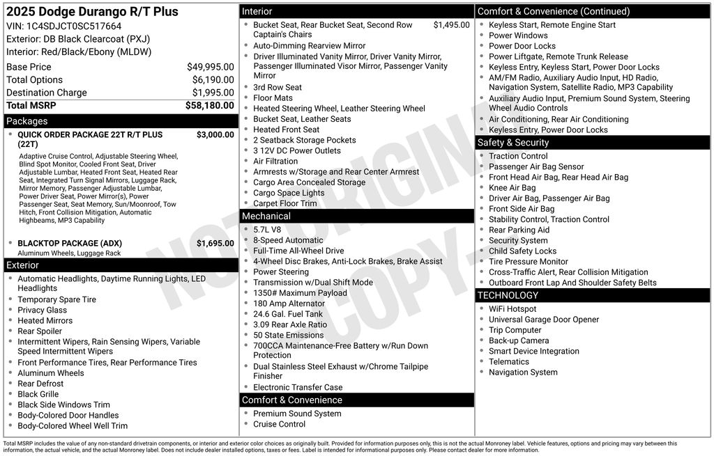 2025 Dodge Durango R/T Plus DB Black Crystal Clearcoat HEMI 5.7L V8 Multi Displacement VVT 8-Speed Automatic AWD