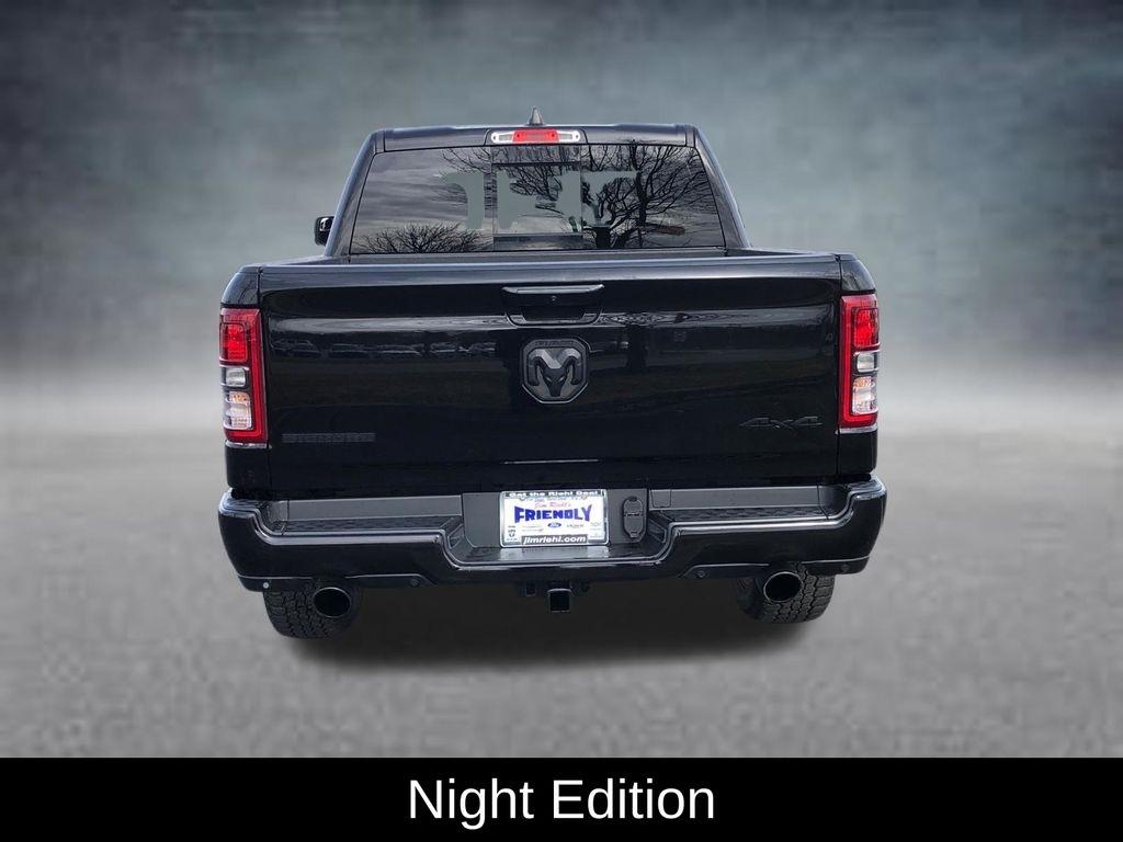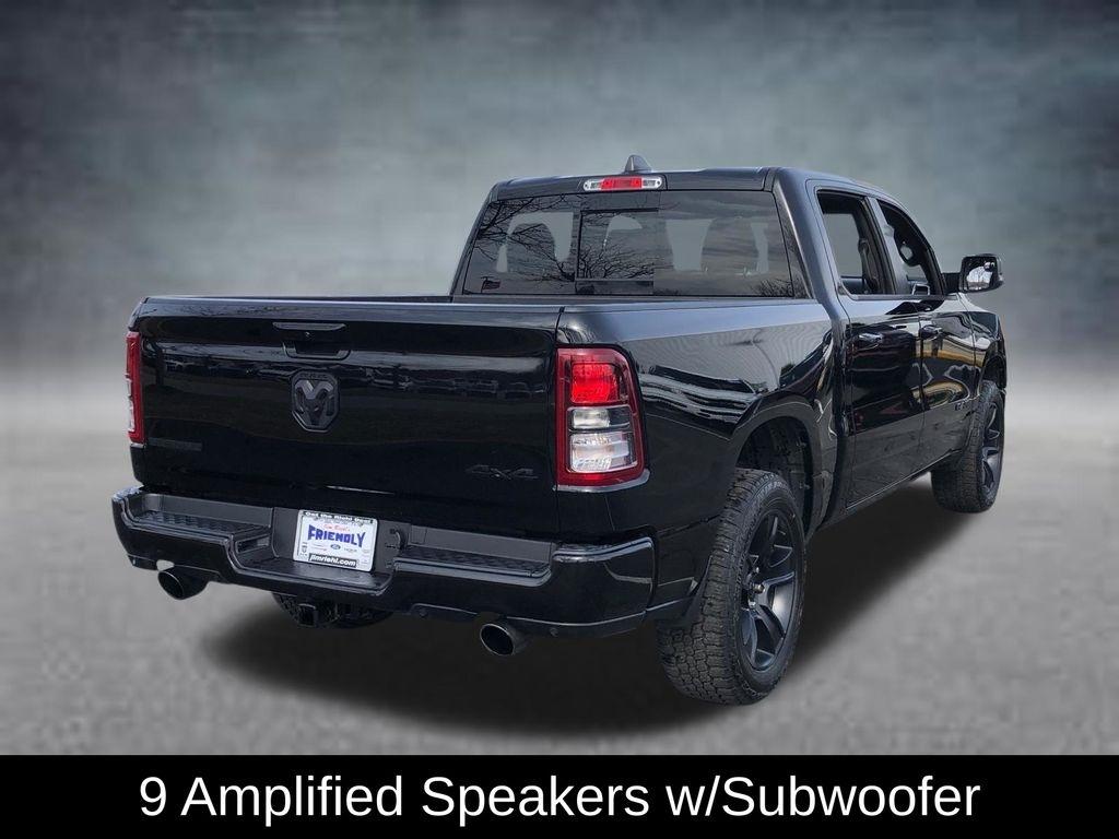 CARFAX One-Owner. Clean CARFAX. 115V Auxiliary Power Outlet, 2nd Row In Floor Storage Bins, 400W Inverter, 9 Amplified Speakers w/Subwoofer, Accent Color Door Handles, Accent Color Premium Power Mirrors, Air Conditioning ATC w/Dual Zone Control, Anti-Spin Differential Rear Axle, Auto-Dimming Exterior Driver Mirror, Auto-Dimming Rear-View Mirror, Big Horn Badge, Big Horn Level B Equipment Group, Black Exterior Mirrors, Black Exterior Truck Badging, Black Headlamp Bezels, Black Interior Accents, Black Painted Exterior Mirrors Caps, Black Premium Power Mirrors, Body Color Front Bumper, Body Color Rear Bumper w/Step Pads, Class IV Receiver Hitch, Cluster 7.0" TFT Color Display, Convex Wide-Angle Exterior Mirror Insert, Delay-off headlights, Deluxe Cloth Bucket Seats, Dual Exhaust w/Black Tips, Exterior Mirrors Courtesy Lamps, Exterior Mirrors w/Heating Element, Exterior Mirrors w/Supplemental Signals, Front Fog Lamps, Fully automatic headlights, Global Telematics Box Module (TBM), Glove Box Lamp, GPS Navigation, Heated Front Seats, Heated Steering Wheel, LED Footwell Lighting, Media Hub w/2 Charge Only USBs, Night Edition, ParkSense Front/Rear Park Assist w/Stop, ParkView Rear Back-Up Camera, Power 2-Way Driver Lumbar Adjust, Power 8-Way Driver Seat, Power Adjustable Pedals, Power-Folding Mirrors, Quick Order Package 27Z Big Horn, Radio: Uconnect 5 Nav w/12.0" Display, RAM Grille Badge - Black, Rear Dome w/On/Off Switch Lamp, Rear Power Sliding Window, Rear Window Defroster, Remote Start System, Security Alarm, SiriusXM Radio Service, SiriusXM Satellite Radio, Split folding rear seat, Sun Visors w/Illuminated Vanity Mirrors, Universal Garage Door Opener, Wheels: 20" x 9.0" Premium Paint/Polished.
