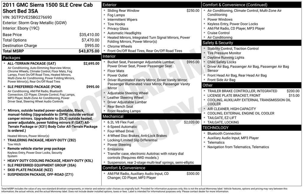 2011 GMC Sierra 1500 SLE Storm Gray Metallic Vortec 6.2L V8 SFI VVT Flex Fuel 6-Speed Automatic 4WD