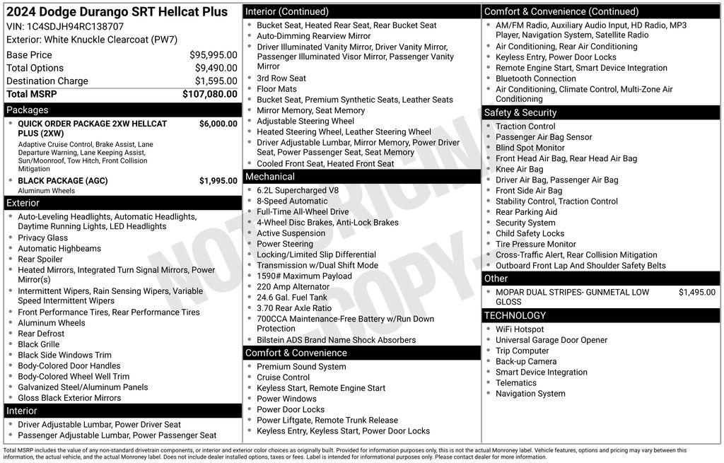 2024 Dodge Durango SRT Hellcat White Knuckle Clearcoat 6.2L Supercharged HEMI V8 SRT 8-Speed Automatic AWD