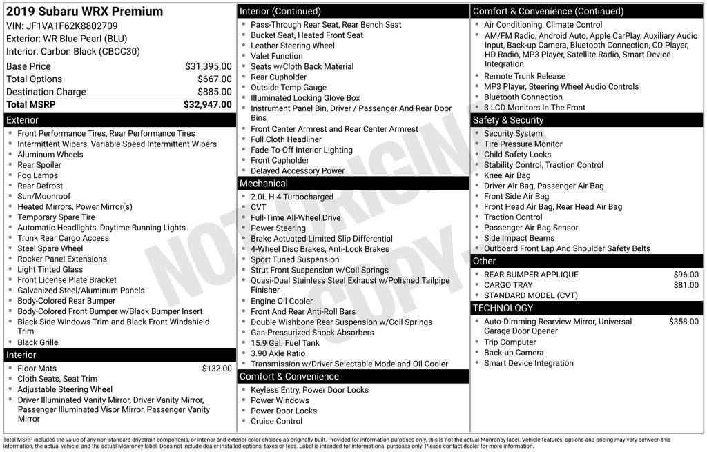 2019 Subaru WRX