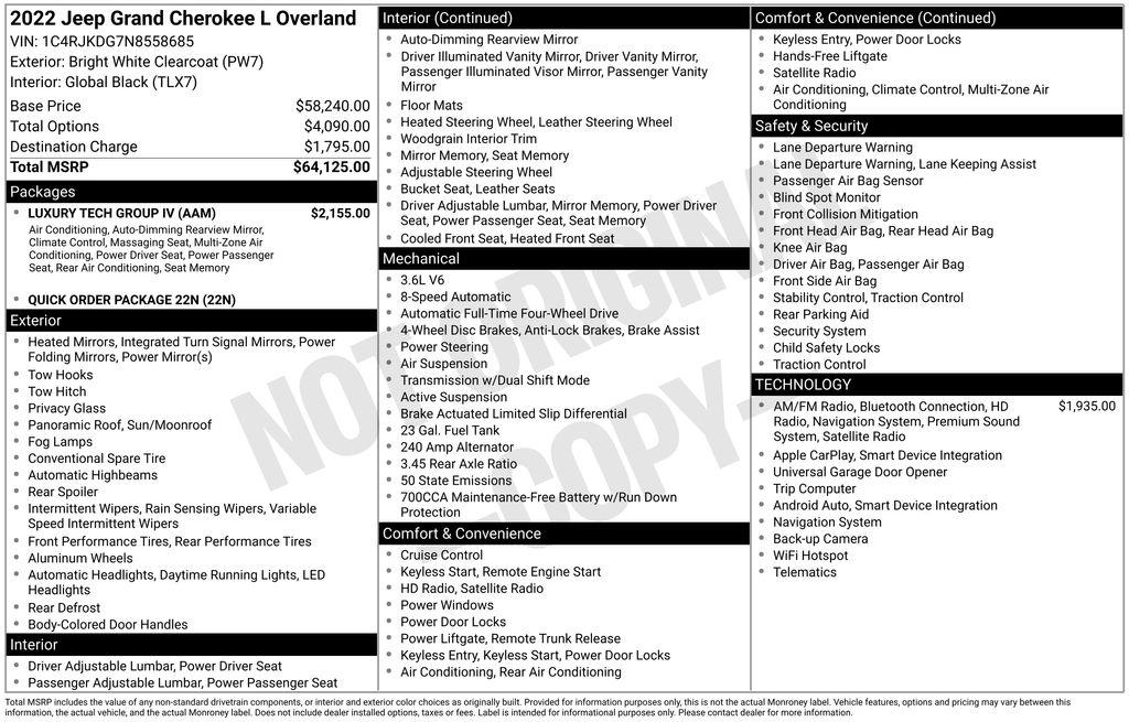 2022 Jeep Grand Cherokee L Overland Bright White Clearcoat 3.6L V6 24V VVT 8-Speed Automatic 4WD