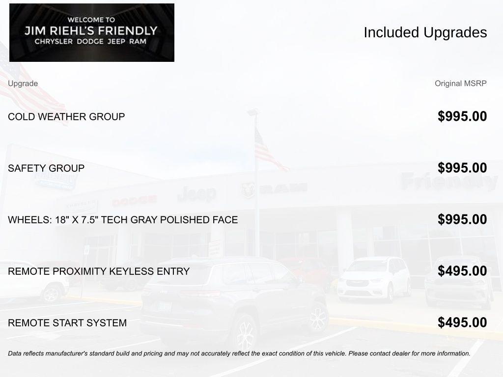 This Vehicle is currently located in Lapeer. Welcome to Jim Riehl's Friendly Chrysler Dodge Jeep Ram of Lapeer. Just North of FCA Headquarters on Lapeer Road South of I69. We are delivering vehicles Daily. To your home or office. Please call us today 810.664.2900. Sale Prices are based on incentives available in Lapeer County. Residency restrictions apply. Sale price includes Stellantis loyalty, or conquest offers when applicable to Stellantis offers.