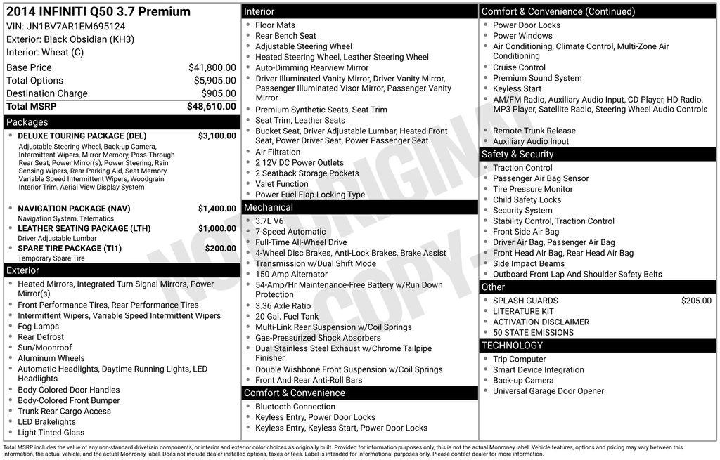 2014 INFINITI Q50 Premium Black Obsidian 3.7L V6 DOHC 24V 7-Speed Automatic with Manual Shift AWD
