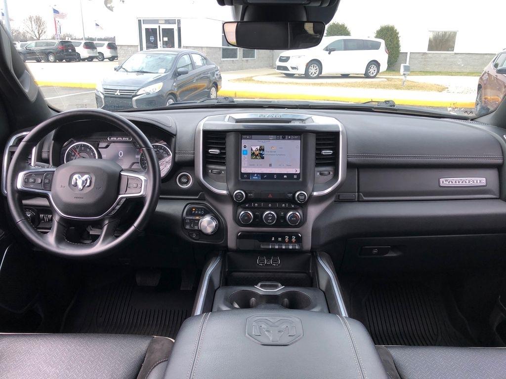 CARFAX One-Owner. 2nd Row In Floor Storage Bins, All Plant-Installed Decals, AM/FM radio: SiriusXM, Apple CarPlay, Apple CarPlay/Android Auto, Auto High Beam Headlamp Control, Auto-Dimming Exterior Driver Mirror, Automatic temperature control, Black Interior Accents, Blind Spot & Cross Path Detection, Body Color Door Handles, Body Color Exterior Mirrors, Body Color Front Bumper, Body Color Premium Power Mirrors, Body Color Rear Bumper w/Step Pads, Convex Wide-Angle Mirror Insert, Delay-off headlights, Driver Seat Memory, Exterior Mirrors Courtesy Lamps, Exterior Mirrors w/Heating Element, Exterior Mirrors w/Memory, Exterior Mirrors w/Supplemental Signals, Foam Bottle Insert (Door Trim Panel), Front fog lights, Fully automatic headlights, Grille Surround 3 Body Color Tex 2 Black, Heated Front Seats, Heated Steering Wheel, Laramie Level I Equipment Group, Leather Trimmed Bucket Seats, Memory seat, Navigation System, ParkSense Front/Rear Park Assist w/Stop, ParkView Rear Back-Up Camera, Power driver seat, Power-Folding Mirrors, Quick Order Package 27H Laramie, Radio: Uconnect 5 W w/8.4" Display, Rain Sensitive Windshield Wipers, Remote keyless entry, Remote Tailgate Release, Split folding rear seat, Sport Appearance Package, Sport Decal, Sport Performance Hood, Twill Film Appliques, Ventilated Front Seats, Wheels: 20" x 9" Premium Painted w/Inserts.
